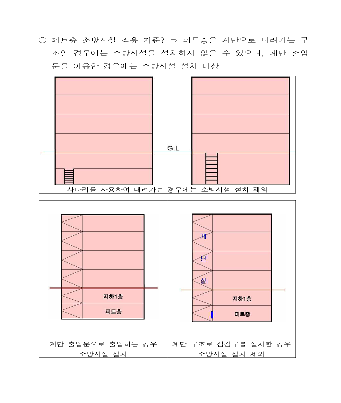 ※ 피트공간 등을 타 용도로 사용할 경우 소방시설 설치등 적의조치