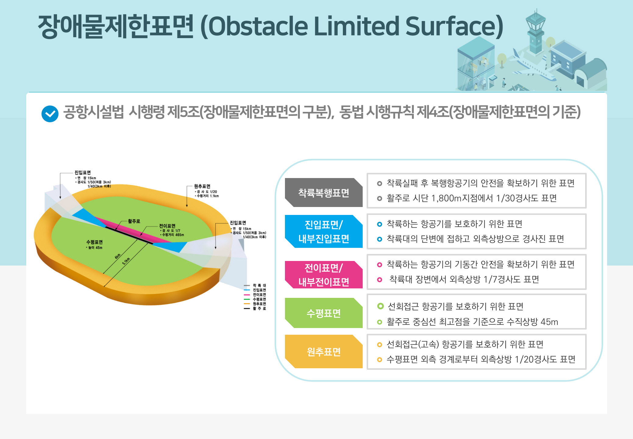 공항주변지역 고도제한 - 제한고시 : 항공청고시 제1993-7호 - 제한목적 : 항공기의 안전운항을 위해 공항 ...